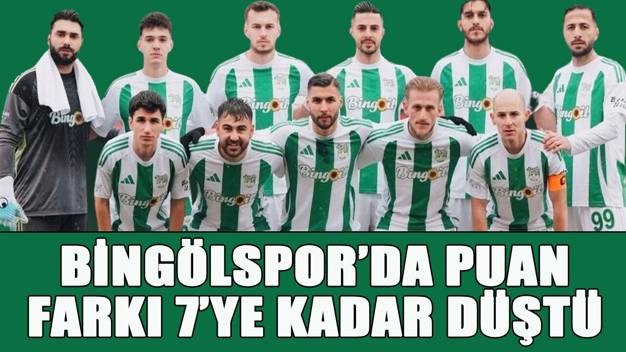 12 Bingölspor, sezonun ikinci devresinde çıktığı 8 karşılaşmanın 5’inde puan kaybetti. 4 beraberlik, 1 mağlubiyet ile 11 puanlık kayıp yaşayan 12 Bingölspor'da, bu haftaki beraberlik ve ikinci sıradaki takımın haftayı 3 puanla kapatmasıyla puan farkı 7’ye düştü.