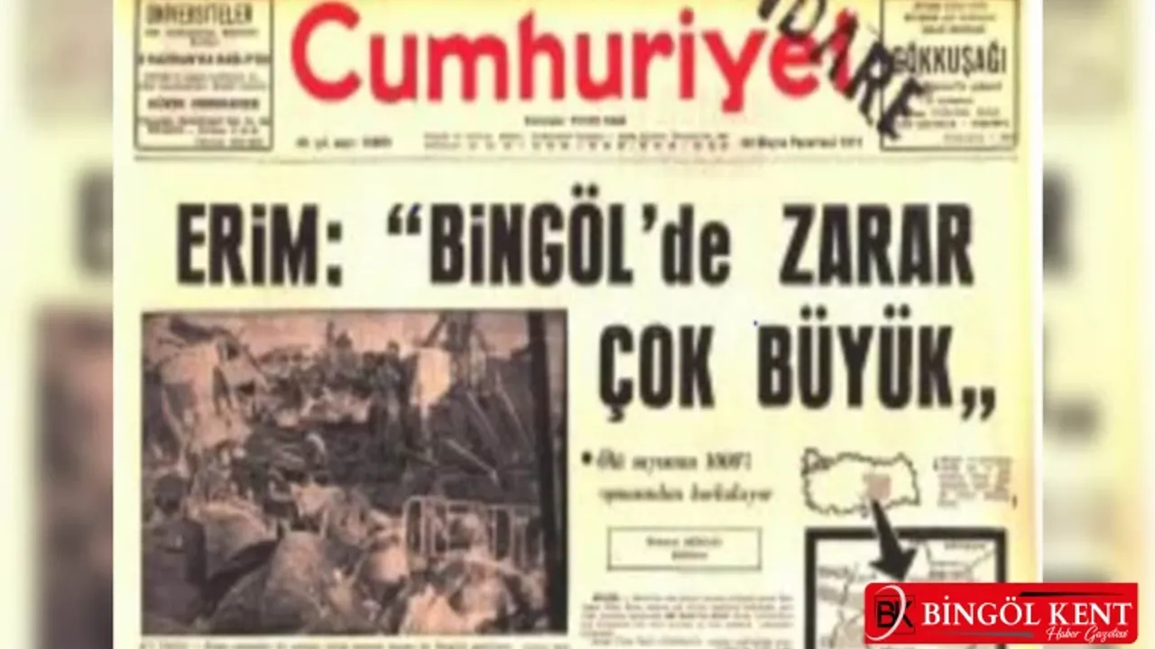 1971 Bingöl depremi, dönemin gazetelerinde geniş yer buldu. Cumhuriyet Gazetesi, 24 Mayıs 1971 tarihinde deprem haberini manşetine taşıdı. Haberde, dönemin başbakanı Nihat Erim'in "Bingöl'de zarar çok büyük" sözlerine yer verildi.