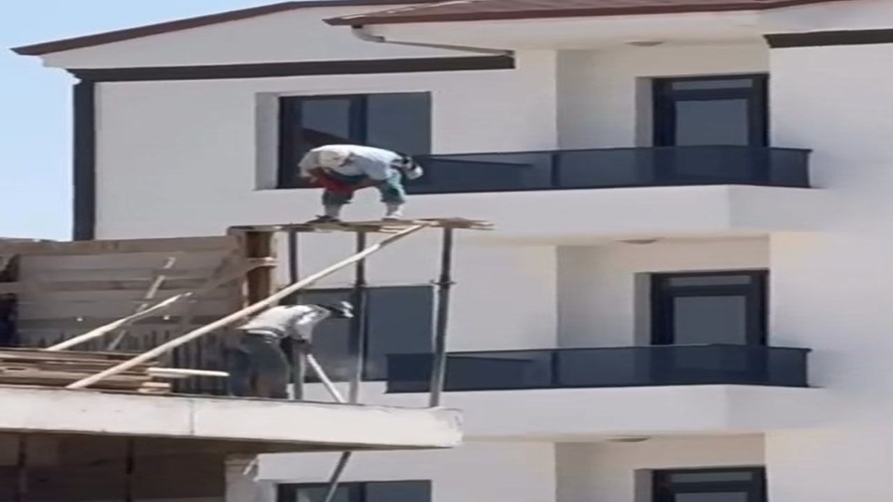 Alınan bilgiye göre, Elazığ merkez Çaydaçıra Mahallesi'ndeki 8 katlı bir apartmanın inşaatında hiçbir güvenlik tedbiri almadan, binanın en üst katında işçilerin hayatlarını adeta hiçe sayarak çalıştığı görüntüler yürekleri ağza getirirken. tepki çekti.