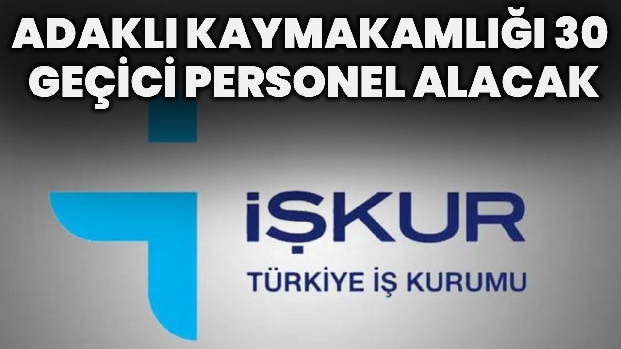 Adaklı Kaymakamlığı, İŞKUR İşgücü Uyum Programı (İUP) kapsamında kamu alanlarında temizlik, bakım ve destek hizmetlerinde görevlendirilmek üzere 30 geçici personel alımı yapacağını açıkladı.