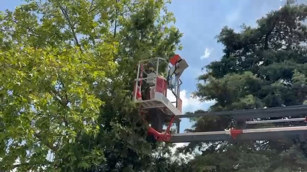 Ağaçta Mahsur Kalan Kedileri İtfaiye Kurtardı
