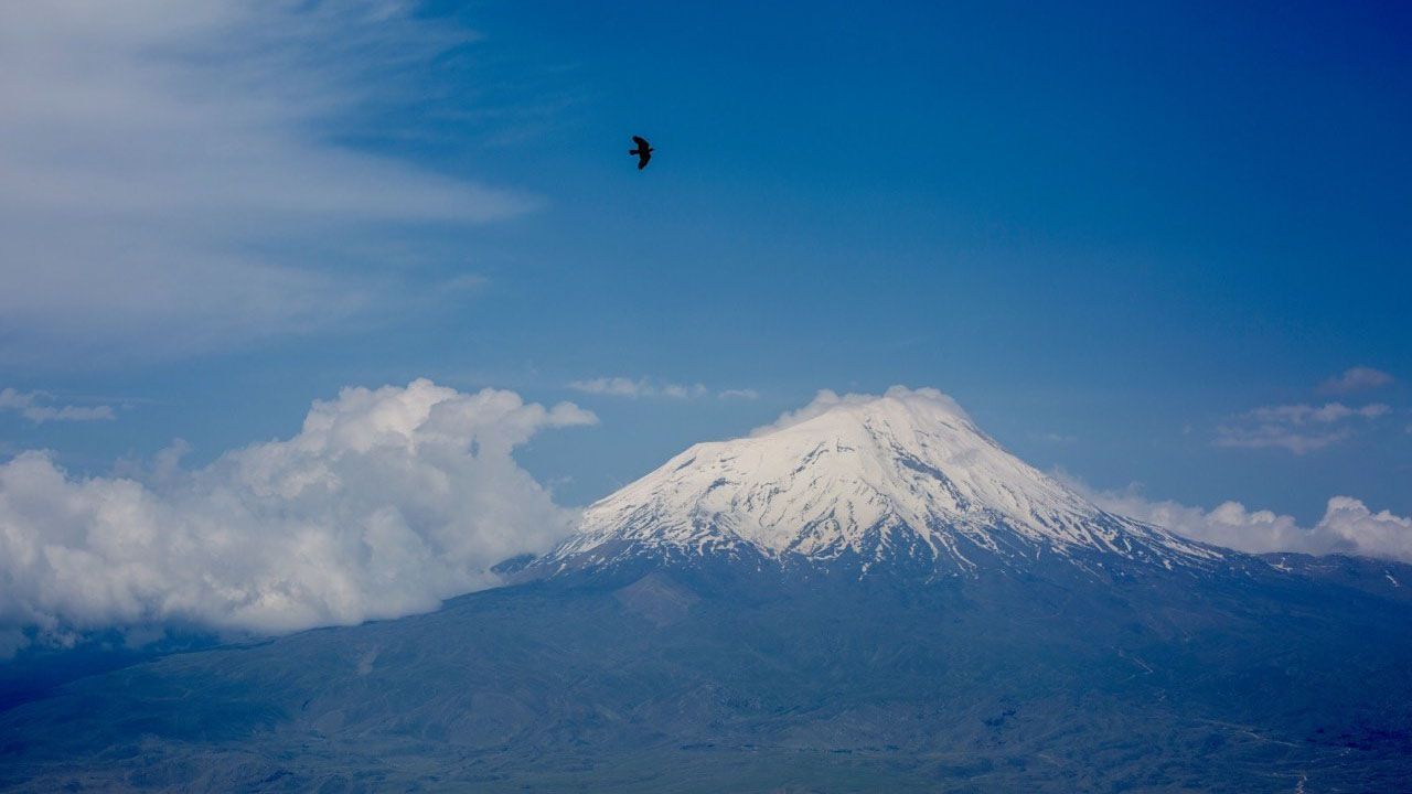 Ağrı’nın Doğubayazıt ilçesindeki Türkiye’nin en yüksek zirvesi ünvanını elinde bulunduran 5 bin 137 metre rakımlı Ağrı Dağı, ilkbaharla birlikte kartpostallık manzaralar sunuyor. Zirvesindeki kar tabakası ve eteklerindeki bulutlarla bir bütünlük oluşturan Ağrı Dağı, eşsiz manzarasıyla görenleri hayran bırakıyor.