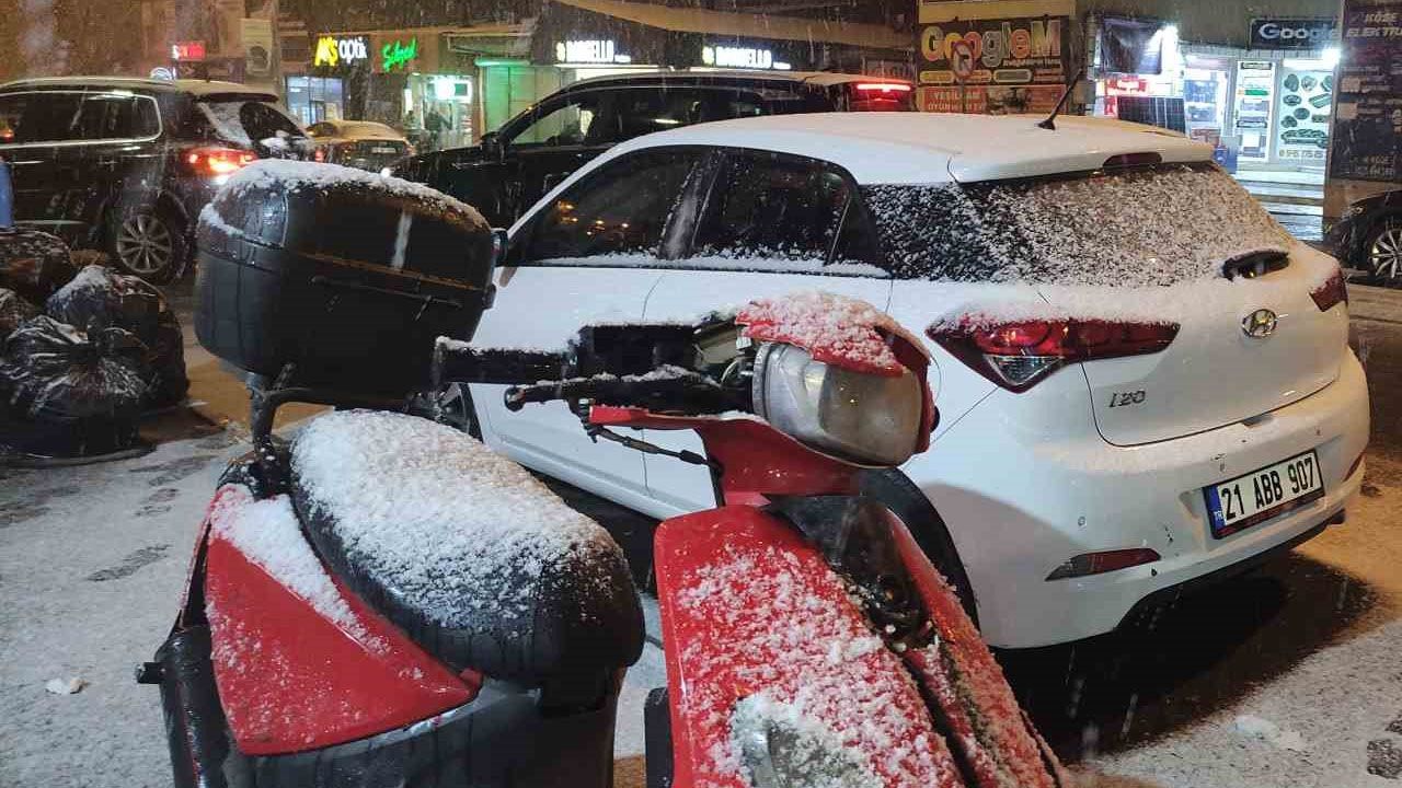 Ardahan'da dün akşam saatlerinde etkili olan kar yağışıyla birlikte kent merkezi beyaz örtüyle kaplandı.
