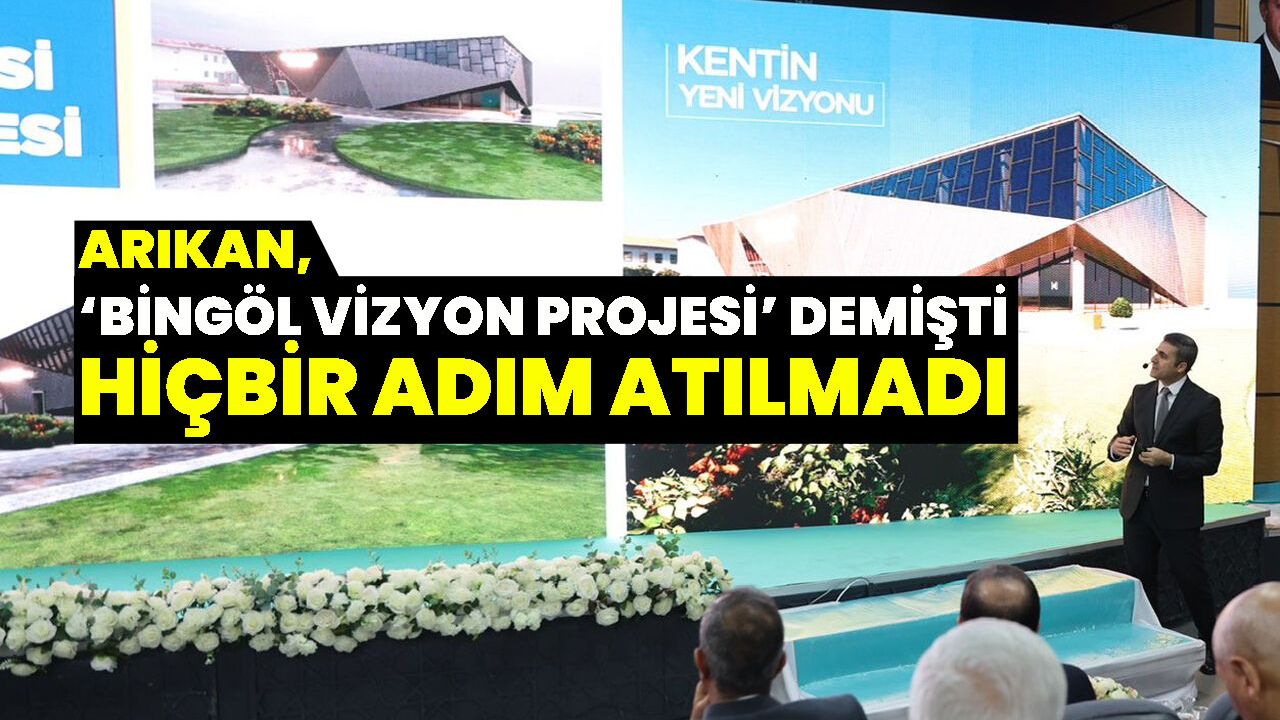 Bingöl Belediye Başkanı Erdal Arıkan’ın vizyon projesi dediği proje ile ilgili bugüne kadar hiçbir çalışma yapılmadı. Seçimden önce açıklanan proje, seçim bittikten sonra gündeme dahi getirilmedi.