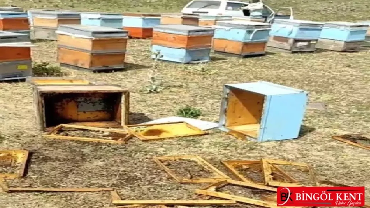 Muş'un Varto ilçesinde aç ayılar, ballarını yedikleri kovanları parçalayarak arıları öldürdü