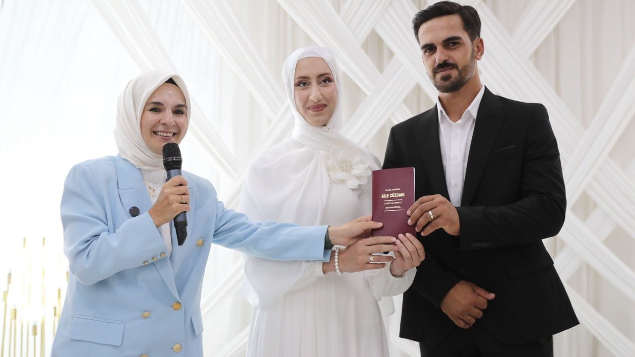 Erdal Arıkan tarafından genç çiftlerin nikahı kıyılırken, Bakan Göktaş ve Vali Ahmet Hamdi Usta genç çiftin nikah şahitliğini yaptı.