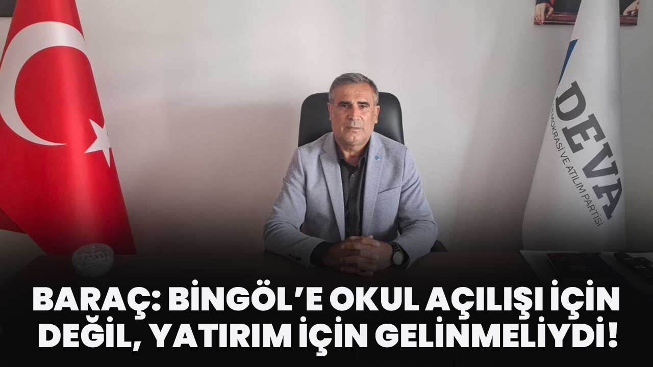 DEVA Partili İl Başkanı Nihat Baraç, Bingöl’de yaşanan ekonomik sıkıntılara ve işsizlik sorununa dikkat çekerek, üst düzey bir devlet yetkilisinin yalnızca okul açılışı için şehre gelmesini eleştirdi. Baraç, “Koskoca Cumhurbaşkanı Yardımcısı’nın Bingöl’e sadece bir okul açılışı için gelmesi, bu şehrin gerçek sorunlarının göz ardı edildiğini göstermektedir. Biz kendisinden fabrika açılışı, istihdam sağlayacak yatırımlar ve ekonomiye katkı sunacak projeler için Bingöl’e gelmesini beklerdik.Tabi ki eğitim önemli bu açıklamamdan eğitime önem vermediğim fikri anlaşılmasın eğitim gerçekten önemli benim ne demek istediğimi Bingöllü hemşehrilerim gayet iyi biliyorlar.” ifadelerini kullandı.