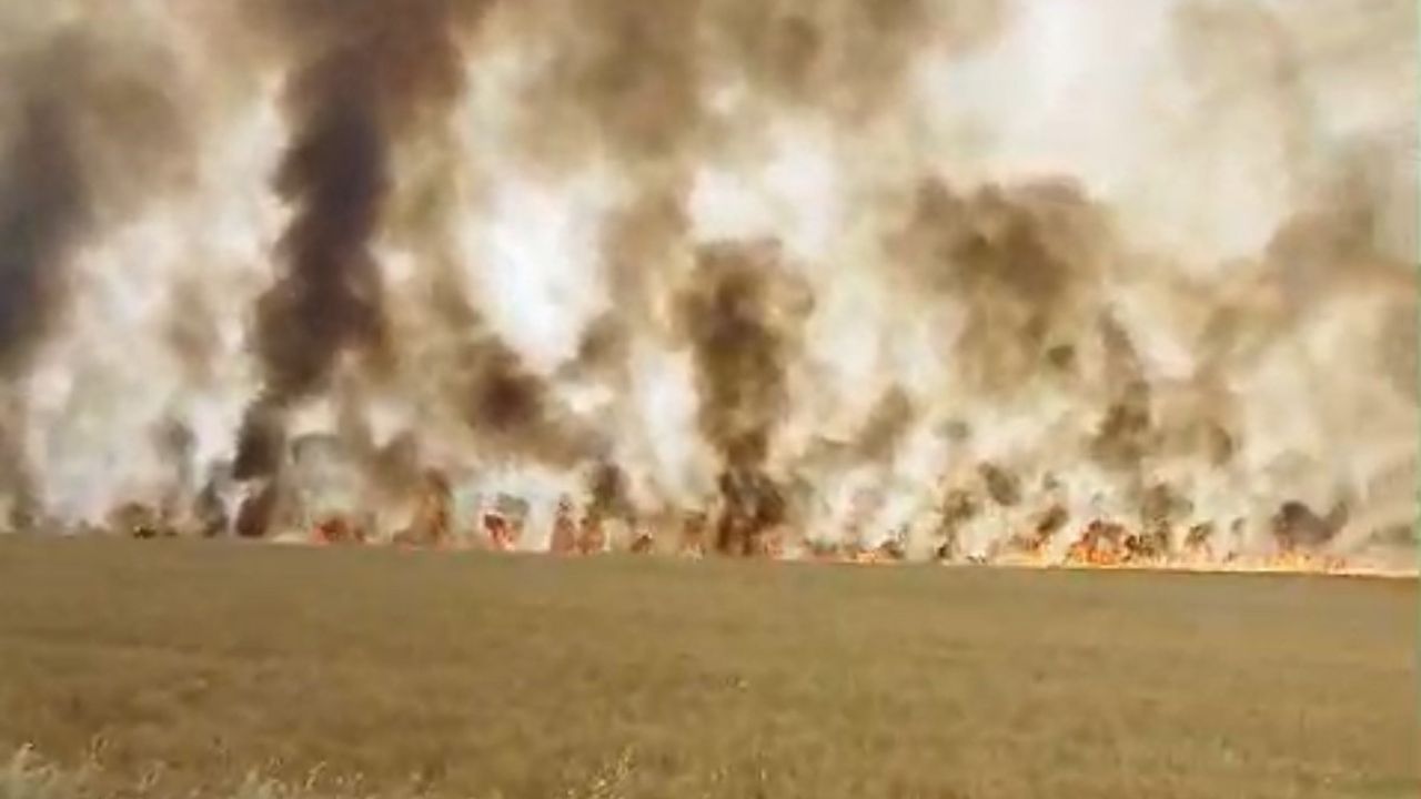 Olay, ilçeye bağlı Çaytepe Mahallesi kırsalında meydana geldi. Edinilen bilgilere göre, buğday hasadı sırasında biçerdöverin patoz kısmına telin girmesi sonucu çıkan kıvılcım yangına neden oldu. Alevlerin tarlaya yayılmasıyla birlikte biçerdöverin patozu sökülerek olay yerinden uzaklaştırıldı.