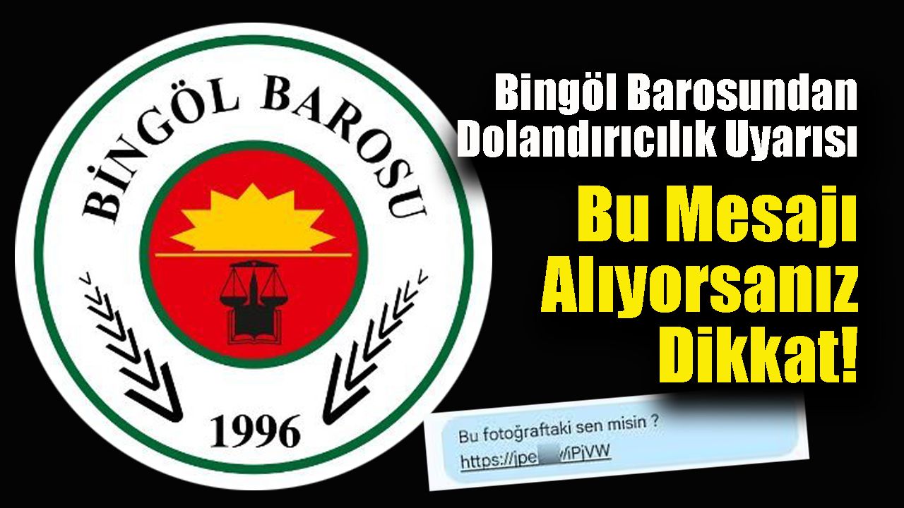Bingöl Barosu, son günlerde WhatsApp üzerinden gönderilen "Bu fotoğraftaki sen misin?" ifadelerinin yer aldığı mesajla ilgili açıklama yaptı. Mesajın dolandırıcılık amaçlı olduğunu belirten baro, şu açıklamayı yaptı.