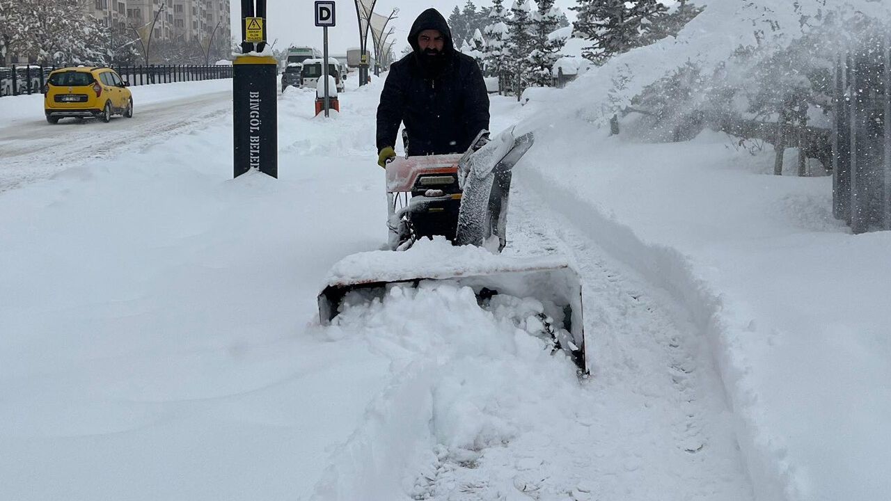 Bingöl’de 2 gündür etkisini sürdüren yoğun kar yağışıyla birlikte kent merkezindeki kar kalınlığı 50 santimetreye kadar ulaşırken, Bingöl Belediyesi ekipleri tarafından karla mücadele çalışmaları kapsamında cadde ve sokaklarda tuzlama, kar küreme ve