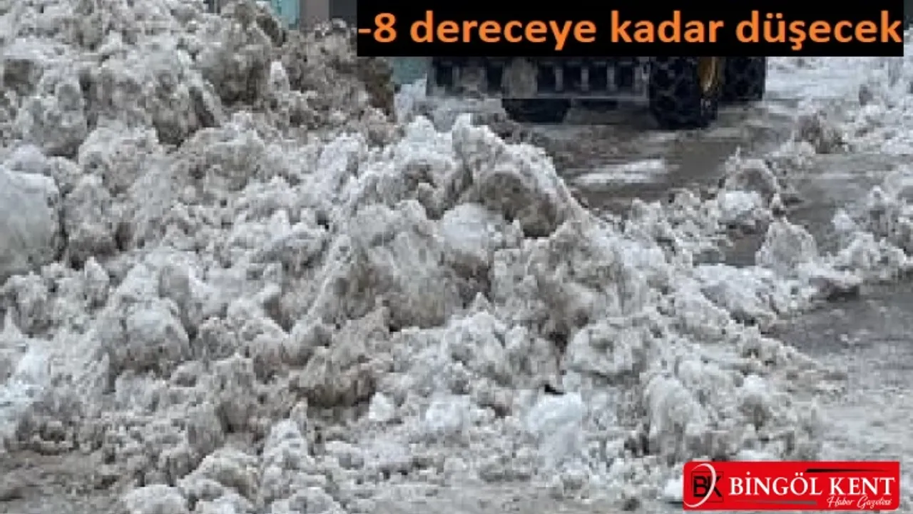 Bingöl’de bugünden itibaren hava sıcaklığı -8 dereceye kadar düşecek. Cuma gününden itibaren etkili olan yoğun kar yağışı, yerini açık havaya bırakırken, hava sıcaklığında hissedilir derecede azalma meydana geldi. Meteorolojik verilere göre, bugünden itibaren etkili olacak soğuk havanın -8 derece dolaylarında olması bekleniyor. Bingöl merkezde hava sıcaklığının hafta boyunca 5 ila -8 derece dolaylarında değişmesi beklenirken, yağış beklenmiyor. Öte yandan, soğuk hava nedeniyle oluşabilecek buzlanma olaylarına karşı dikkatli olunması uyarısında bulunuldu.