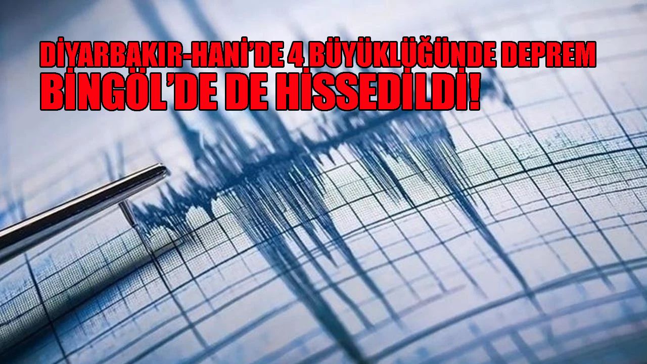 Boğaziçi Üniversitesi Kandilli Rasathanesi ve Deprem Araştırma Enstitüsü verilerine göre, bugün saat 14.50’de merkez üssü Diyarbakır’ın Hani ilçesi Kaledibi mevkii olan 4 büyüklüğünde deprem meydana geldi. Yerin 1.5 kilometre derinliğinde meydana gelen deprem, Bingöl kent merkezinde de hissedilirken korku ve paniğe yolaçtı.