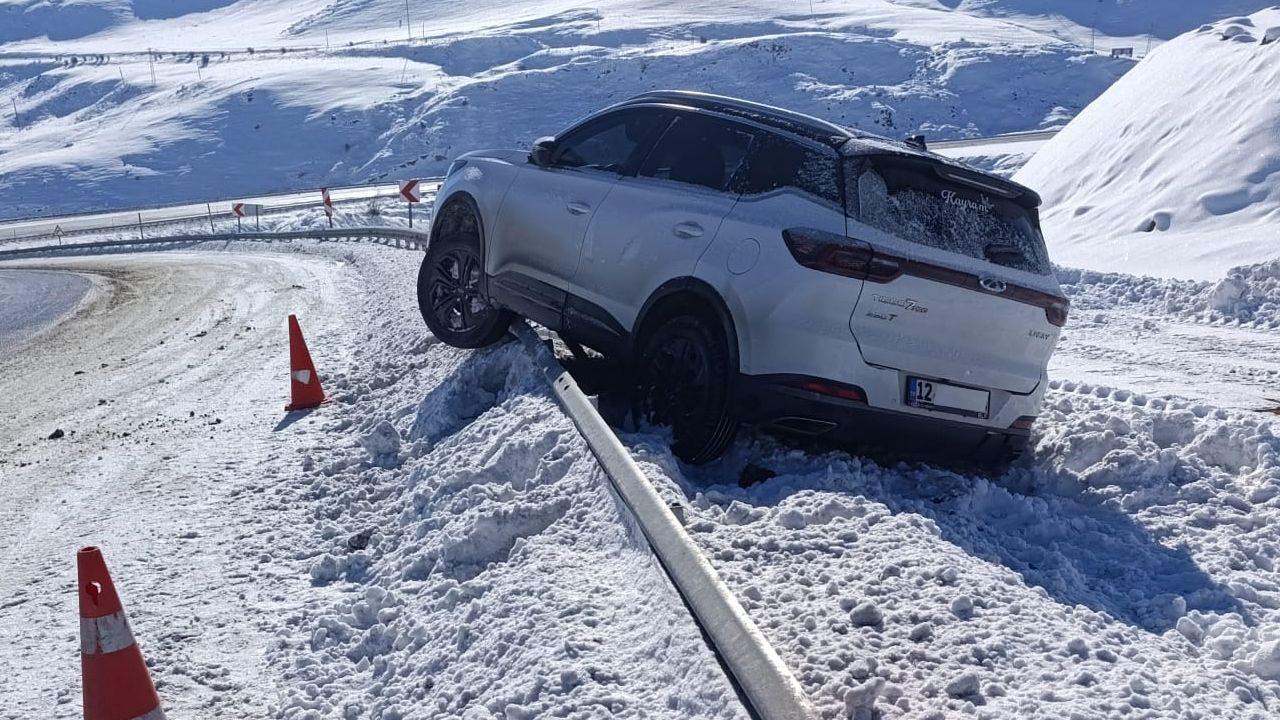 Bingöl Erzurum karayolunun Çat ilçesi yakınlarında meydana gelen trafik kazasında, yoldaki kar ve buzlanmadan dolayı kontrolden çıkan cip bariyere çarptı.