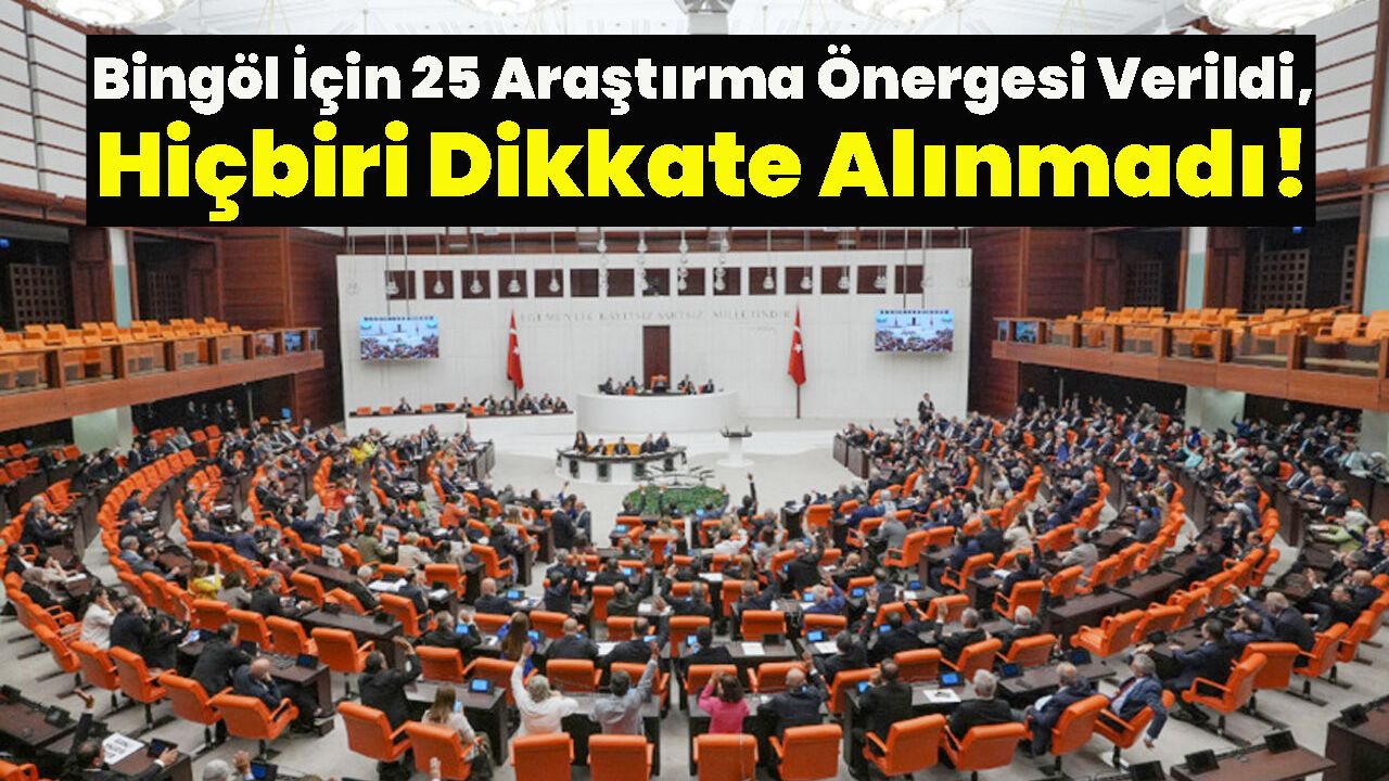 DEM Parti Bingöl Milletvekili Ömer Faruk Hülakü tarafından 2023 yılından buyana meclise 24 araştırma önergesi verilirken, 1 önerge de CHP Diyarbakır Milletvekili Sezgin Tanrıkulu tarafından verildi. Deprem, çevre, sağlık, eğitim, ekonomi, ulaşım gibi alanlarda verilen hiçbir önerge için şuana kadar meclis araştırması başlatılmadı.