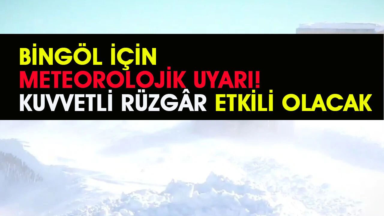 Bingöl için yapılan meteorolojik uyarıda, il genelinde 9 Ocak Cuma günü saat 15.00'e kadar güney yönlerden etkili olması beklenen kuvvetli rüzgar ve yer yer fırtınanın saatte 80 kilometre hızla etkili olacağı belirtilerek;