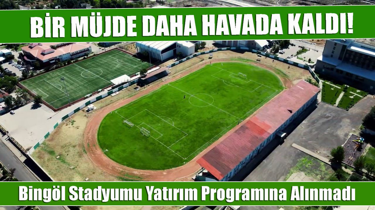 2024 yılında müjdesi verilen ve 2025 yılında yapılacağı söylenen Bingöl Şehir Stadyumu, 2026 yatırım programında yer almadı. 2024 yılında Bingöl Şehir Stadyumu Projesinin onaylandığının belirtilmesinin ardından somut bir gelişme yaşanmazken, stadyumun akıbeti merak ediliyor.