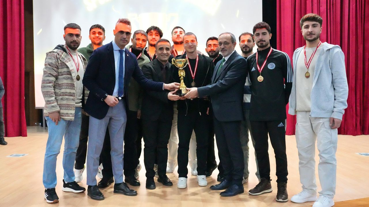 Bingöl Üniversitesinde 2025 yılı sportif etkinlikleri kapsamında “Spor Dostu Kampüs” ve “Yeni Döneme Merhaba” temalarıyla düzenlenen sportif yarışmaların ödül töreni gerçekleştirildi. Takım sporları ve bireysel branşlarda düzenlenen turnuvalarda dereceye giren fakülteler, birimler ve öğrenciler ödüllendirildi. Recep Tayyip Erdoğan Kongre Merkezi’nde gerçekleştirilen törene Rektör Prof. Dr. Erdal Çelik’in yanı sıra Rektör Yardımcıları Prof. Dr. Abdülhakim Koçin, Prof. Dr. Abdurrahman Gül ve Prof. Dr. İbrahim Yasin Erdoğan ile Genel Sekreter Prof. Dr. Veysel Turan, akademisyenler ve öğrenciler katıldı. Törende, dereceye girenlere ödülleri takdim edildi.