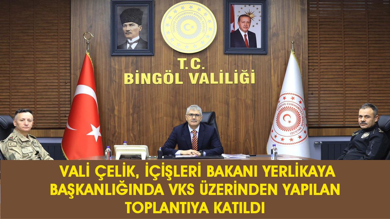 VKS sistemiyle yapılan toplantıya; Bingöl'den Valilik Toplantı Salonu'nda hazır bulunan Bingöl Valisi Cahit Çelik, İl Jandarma Komutanı Tuğgeneral Sabri Küyük ve İl Emniyet Müdürü Beyti Kalaycı katıldı.