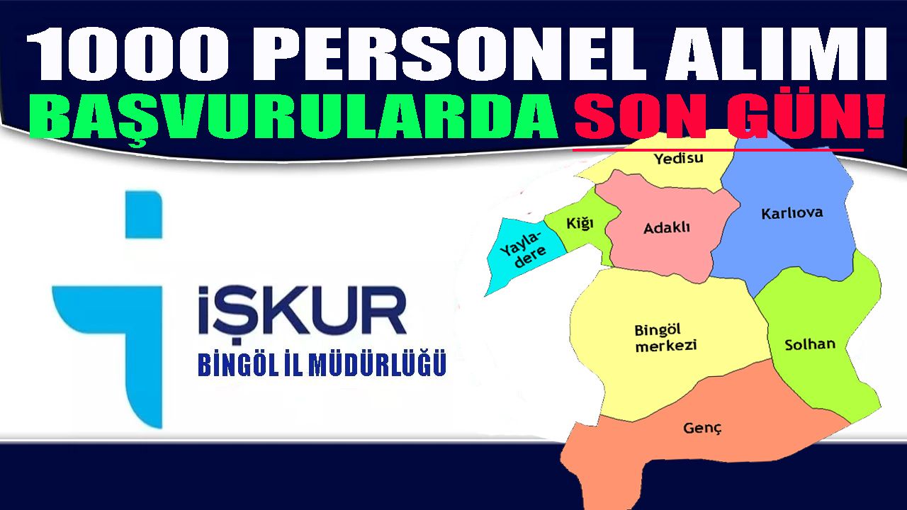 Bingöl genelinde İUP kapsamında 1000 personel alımı için 27 Ekim Pazartesi günü itibariyle başlayan başvurularda bugün son gün! Adaylar başvurularını, İŞKUR İl Müdürlüğü, İŞKUR e-şube, e-Devlet ya da ALO-170 iletişim hattı üzerinden yapabilecek.
