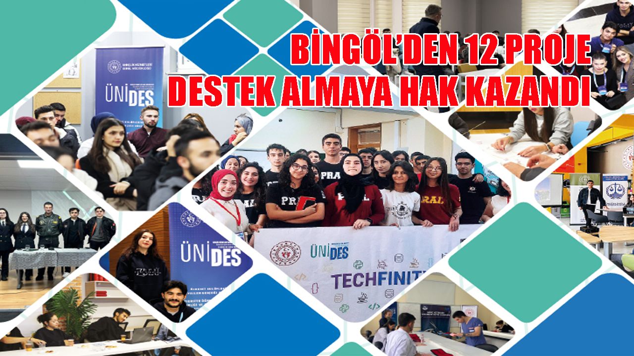 Gençlik ve Spor Bakanlığı Gençlik Hizmetleri Genel Müdürlüğü tarafından yürütülen ‘Üniversite Öğrenci Toplulukları İşbirliği ve Destek Programı’ (ÜNİDES) kapsamında Bingöl’den 12 proje destek almaya hak kazandı.