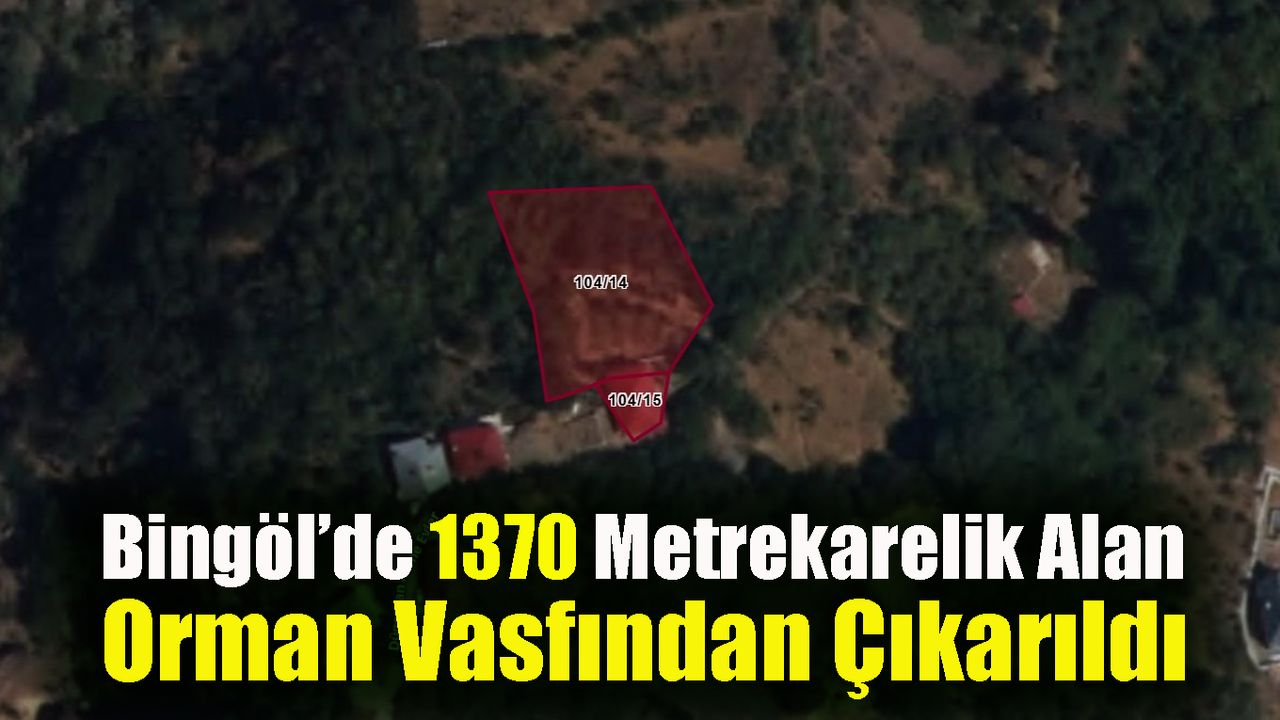Bingöl Merkez Dügernan Köyünde 104 nolu ada ve 14,15 nolu parsellerdeki 1370,63 metrekarelik ormanlık alan, kararla birlikte orman sınırları dışına çıkarıldı.