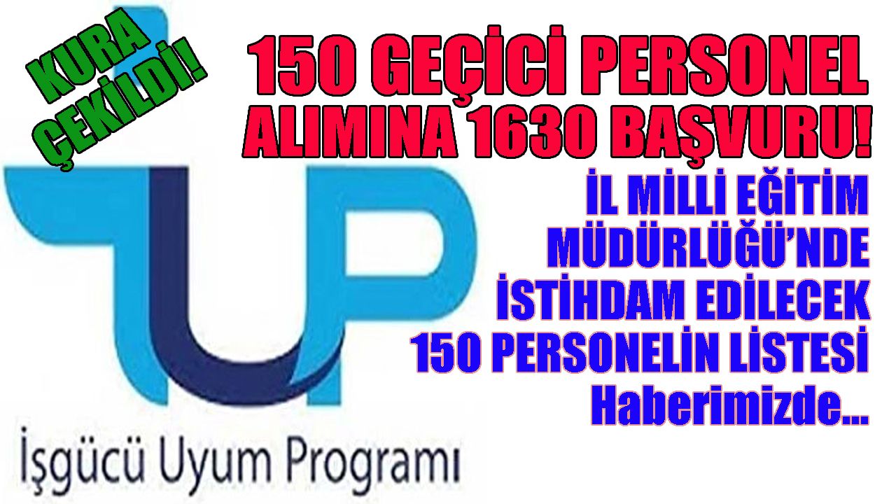 İl Milli Eğitim Müdürlüğü'ne İUP kapsamında alımı yapılacak 150 personelin kura sonucu belirlenen asil isim listesi şöyle: