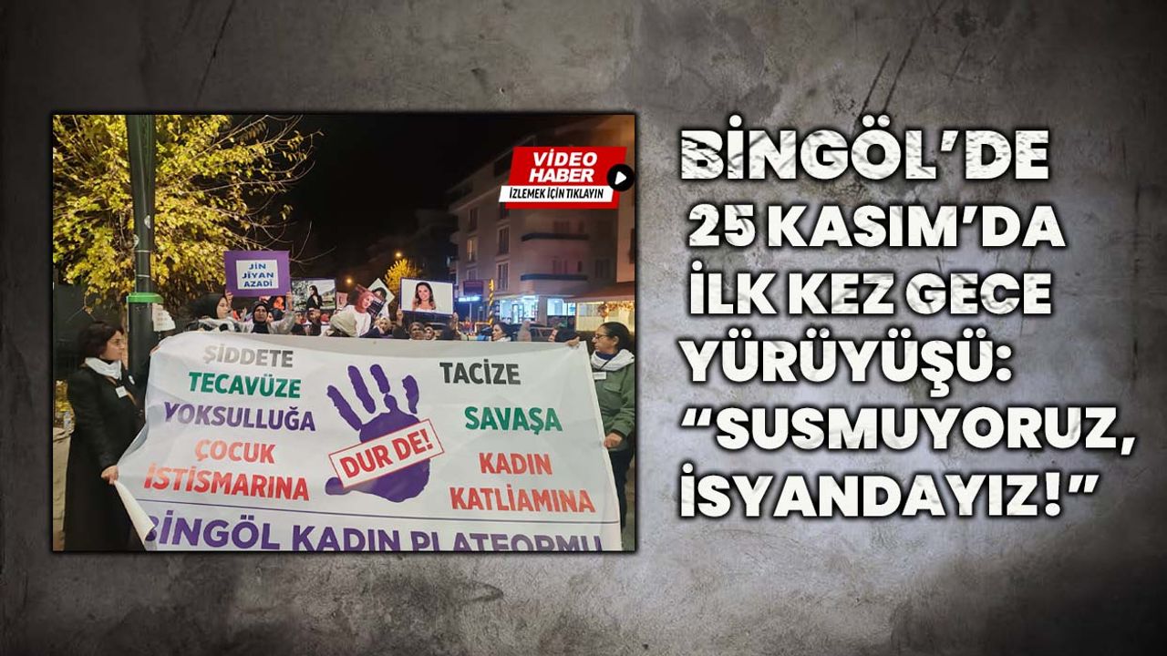 Saat 19.00’da Uydukent Mahallesi’ndeki Taraftar Kahvesi önünde başlayan yürüyüşte kadınlar, taşıdıkları pankartlar ve attıkları sloganlarla “Bingöl’de artık sessizlik yok” mesajı verdi. Kalabalık, Kalium AVM önüne kadar yürüyerek burada basın açıklaması yaptı.