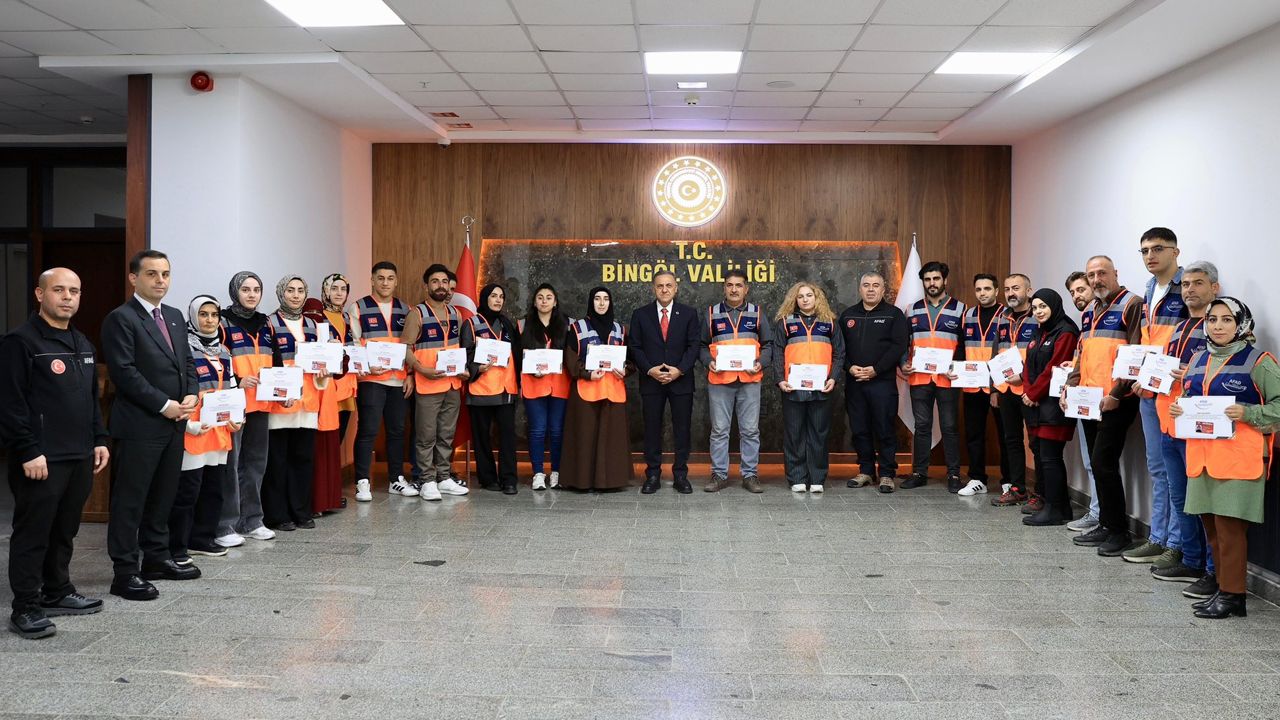 Ayrıca, AFAD eğitmenleri tarafından verilen Kentsel Arama ve Kurtarma Hafif Seviye Akreditasyon Eğitimlerini başarıyla tamamlayan SAR Arama Kurtarma Bingöl Temsilciliği'nin 31 üyesine de