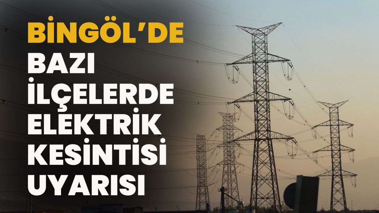 Bingöl’ün çeşitli ilçelerinde planlı elektrik kesintisi yapılacak. Fırat Elektrik Dağıtım A.Ş.’den yapılan açıklamaya göre, Şehir Merkezi, Genç ve Solhan ilçeleri ile bağlı köy ve mezralarda bakım ve onarım çalışmaları nedeniyle elektrik verilemeyecek.