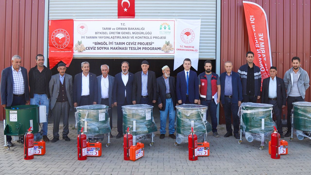 Bingöl İyi Tarım Uygulamalarıyla Ceviz Yetiştiriciliği Projesi kapsamında il genelindeki ceviz üreticilerine ceviz soyma makineleri ve ekipman desteği verildi. Tarım ve Orman Bakanlığı Bitkisel Üretim Genel Müdürlüğü’nün desteğiyle Bingöl’de yürütülen proje kapsamında İl Tarım ve Orman Müdürlüğü’nde düzenlenen törenle ceviz üreticilerine
