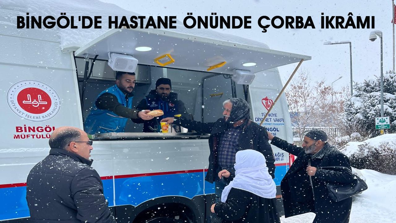 İl Müftülüğü ve Türkiye Diyanet Vakfı (TDV) Bingöl Şubesi tarafından Bingöl Devlet Hastanesi önünde kurulan mobil ikram aracı ile hastalara ve hasta yakınlarına çorba ikram edildi. İl Müftüsü Orhan İmamoğlu'nun da katıldığı çorba ikramı etkinliğinde, İl Sağlık Müdürü Uzm. Dr. Samet Tatlı, soğuk kış gününde hasta ve hasta yakınlarına yönelik çorba ikramından ötürü İl Müftülüğü ve TDV Bingöl Şubesi yetkililerine teşekkür etti.