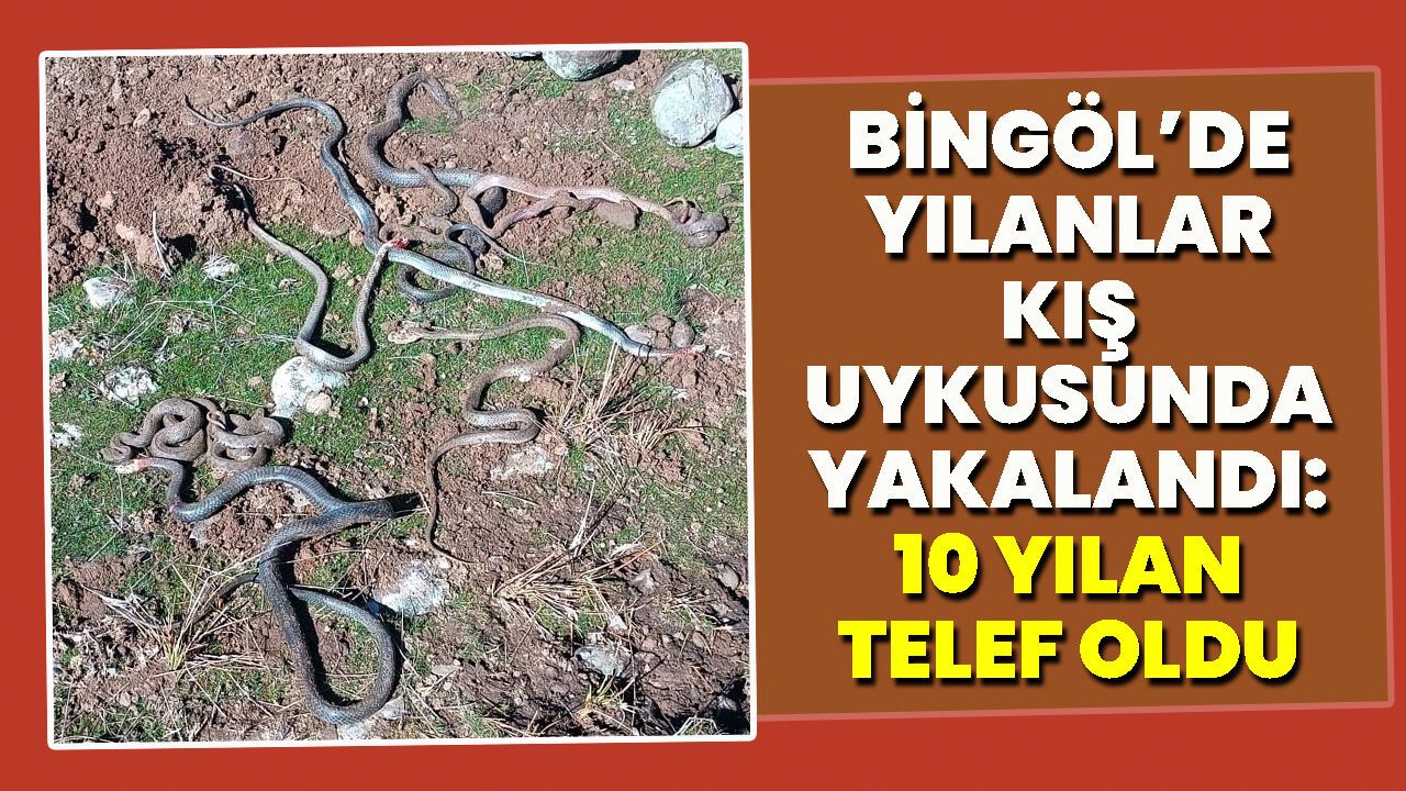 Edinilen bilgiye göre, Bingöl Merkez Kumgeçit-Büyüktekören arasında yol yapımında çalışan bir iş makinesi, çalışmalar sırasında kış uykusunda olan yılan yuvasına denk geldi. Kepçenin çalışma yaptığı esnada kazıcı kolun yılan yuvasına denk gelmesiyle yuvada bulunan 10 yılan telef oldu.