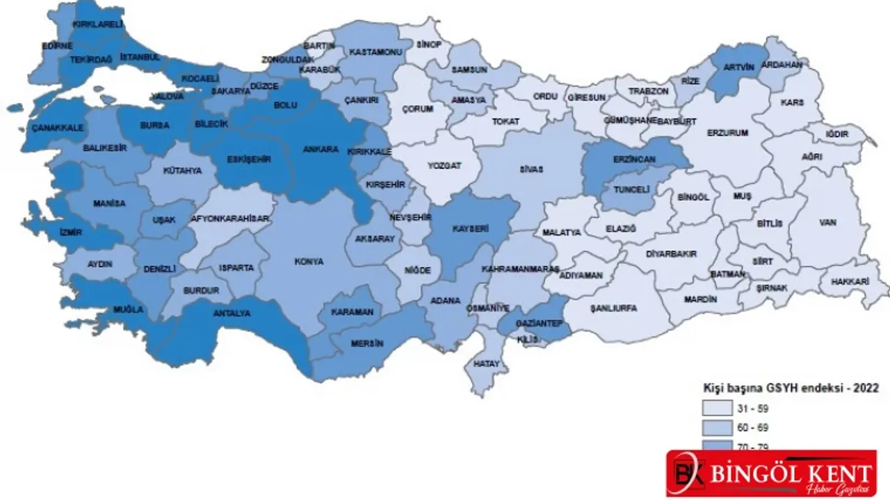 Kişi başına GSYH, 2022 yılında on dört ilde Türkiye ortalamasının üzerinde gerçekleşti. Bingöl’de 2018 yılında 23 bin 192 dolar olan kişi başı yurt içi gayri safi hasıla, 2022 yılında 4 bin 742 dolar olarak açıklandı.