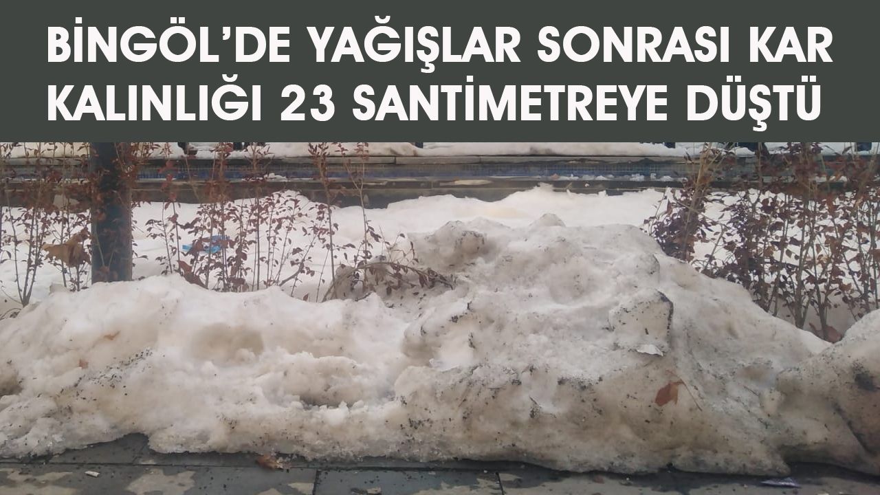 Bingöl’de dün etkili olan kuvvetli yağış ile birlikte kent merkezinde metrekareye 43 kilogram yağış düştü. Yağışlarla birlikte kent merkezinde 38 santimetre olan kar kalınlığı 23 santimetreye kadar düşerken, yüksek kesimlerde de kar kalınlığında gözle görülür düşüşler meydana geldi. Hesarek Kayak Merkezi’nde 41 santimetre olan kar kalınlığı 36 santimetreye kadar düştü.