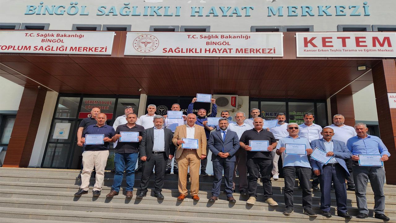 İl Sağlık Müdürlüğü tarafından Bingöl Sağlıklı Hayat Merkezi'nde SAHA Akademisi kapsamında düzenlenen 5. oturum, muhtarların katılımıyla yapıldı. Sağlık okur-yazarlığını artırmaya yönelik düzenlenen programı başarıyla tamamlayan muhtarlar SAHA Akademisi'nden mezun oldular.