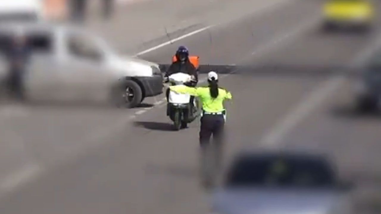 İl Emniyet Müdürlüğü'nden yapılan paylaşımda, "Trafik Tescil ve Denetleme Şube Müdürlüğümüze bağlı ekiplerimizin trafik uygulaması esnasında; Bir motosikletin, kendisinin ve vatandaşlarımızın güvenliğini tehlikeye atarak kaçmasının ardından ekibimiz tarafından yakalamıştır. Unutmayalım ki; Kurallara uymak, hayata bağlanmaktır" denildi.