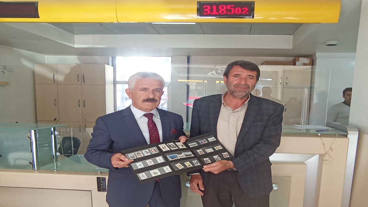 Bingöl PTT Başmüdürü Abdulvahap Atalay tarafından Genç PTT Şubesi'nde 185. sıradaki müşteriye kuruluş yıldönümü günü anısına özel pul koleksiyonu takdim edildi.