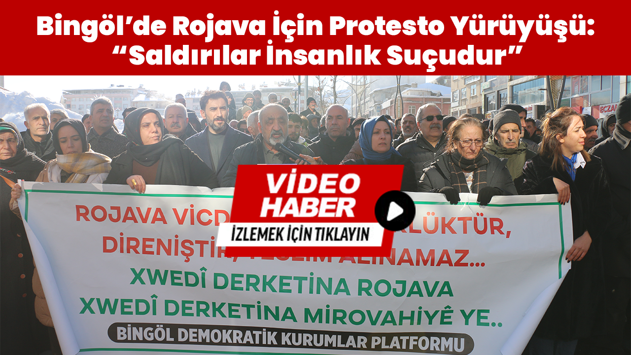 Şam yönetimine bağlı grupların Kuzey ve Doğu Suriye’ye yönelik saldırıları Bingöl’de protesto edildi. Bingöl Demokratik Kurumlar Platformu öncülüğünde kent merkezinde düzenlenen yürüyüş ve basın açıklamasında, 6 Ocak’tan bu yana devam eden saldırıların sivilleri hedef aldığı belirtilerek yaşananların insanlık suçu olduğu vurgulandı. Açıklamada, Rojava bölgeleri ile Halep’in Kürt mahallelerine yönelik saldırılara tepki gösterildi.