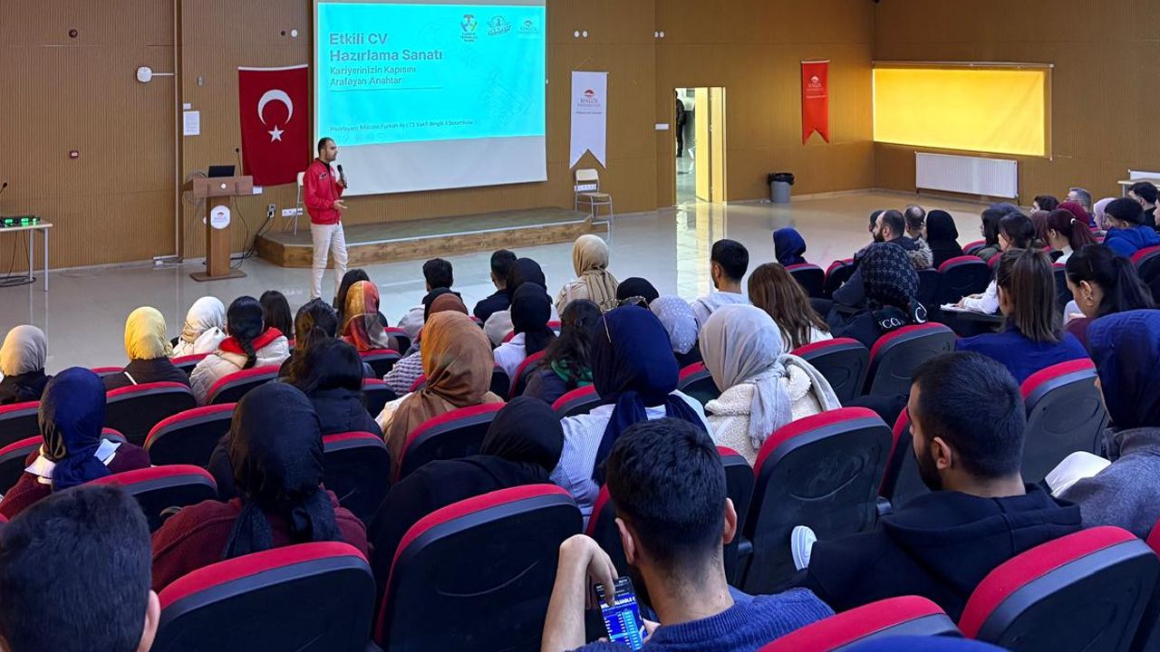 Bingöl Üniversitesi Meslek Yüksekokulu (MYO) konferans salonunda düzenlenen programda, T3 Vakfı Bingöl İl Temsilcisi Mücahit Furkan Ay tarafından etkileyici özgeçmiş oluşturma ve mülakatlarda başarıyı arttırmaya yönelik stratejiler hakkında sunum yapıldı. Programda, iş başvurularında öne çıkmanın yolları, CV hazırlanırken dikkat edilmesi gereken temel unsurlar ve mülakat sürecinde doğru iletişim teknikleri hakkında bilgiler sunuldu.