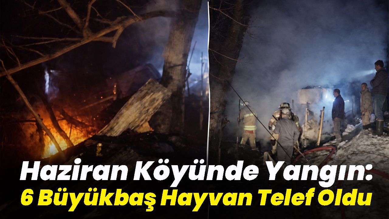 Yangın sonucunda ahır ve ev kullanılamaz hale gelirken, 6 büyükbaş hayvan telef oldu.