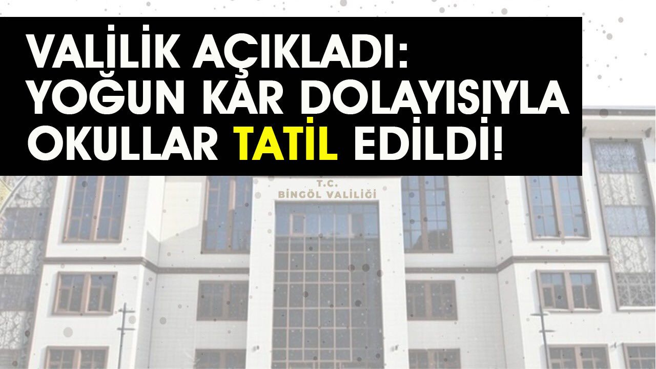 Bingöl’de etkili olan yoğun kar yağışı dolayısıyla ulaşımda meydana gelebilecek aksaklıklara karşı tedbir amacıyla il merkezi ve ilçelerdeki resmi ve özel tüm örgün ve yaygın eğitim kurumları ile kreş ve gündüz bakım evlerinde eğitim öğretime yarım gün süre ile ara verildi.
