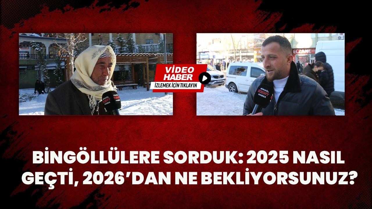 Yeni yıla girmeye saatler kala Bingöl Kent Haber Gazetesi olarak mikrofonumuzu Bingöllü vatandaşlarımıza uzattık. Vatandaşlara 2025 yılının nasıl geçtiğini ve 2026 yılından beklentilerinin neler olduğunu sorduk.
