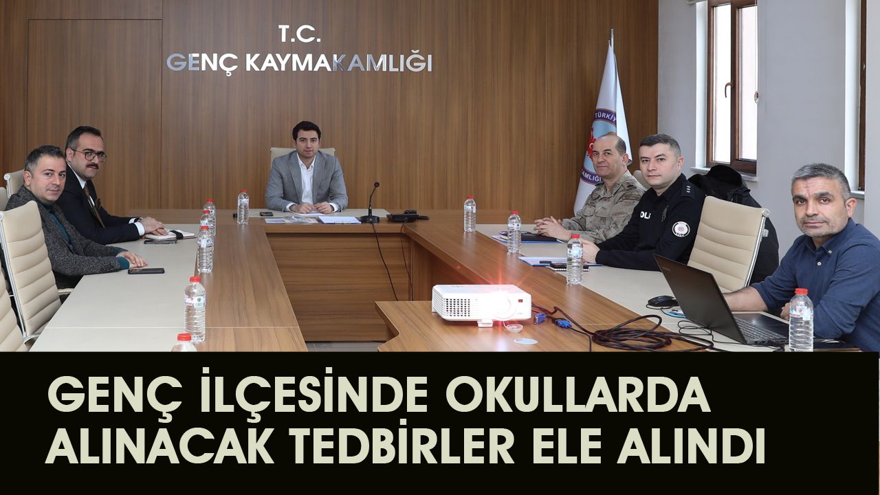 Genç Hükümet Konağı Toplantı Salonu’nda Kaymakam Muhammet Güzel başkanlığında düzenlenen toplantıya, İlçe Jandarma Komutanı Sinan Sert, İlçe Emniyet Müdür Vekili Ahmet Tuncel, İlçe Millî Eğitim Müdürü Muhammet Erdemoğlu, İlçe Sosyal Hizmet Merkezi Müdürü Nurullah Çağlayan ile İş Sağlığı ve Güvenliği Uzmanı Ali Alın katıldı.