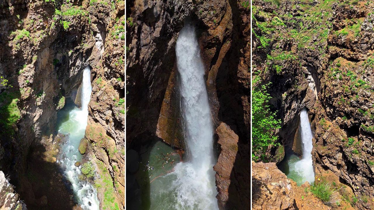 Bingöl'ün Solhan İlçesinde kayanın içinden süzülen şelale görenleri hayran bırakıyor