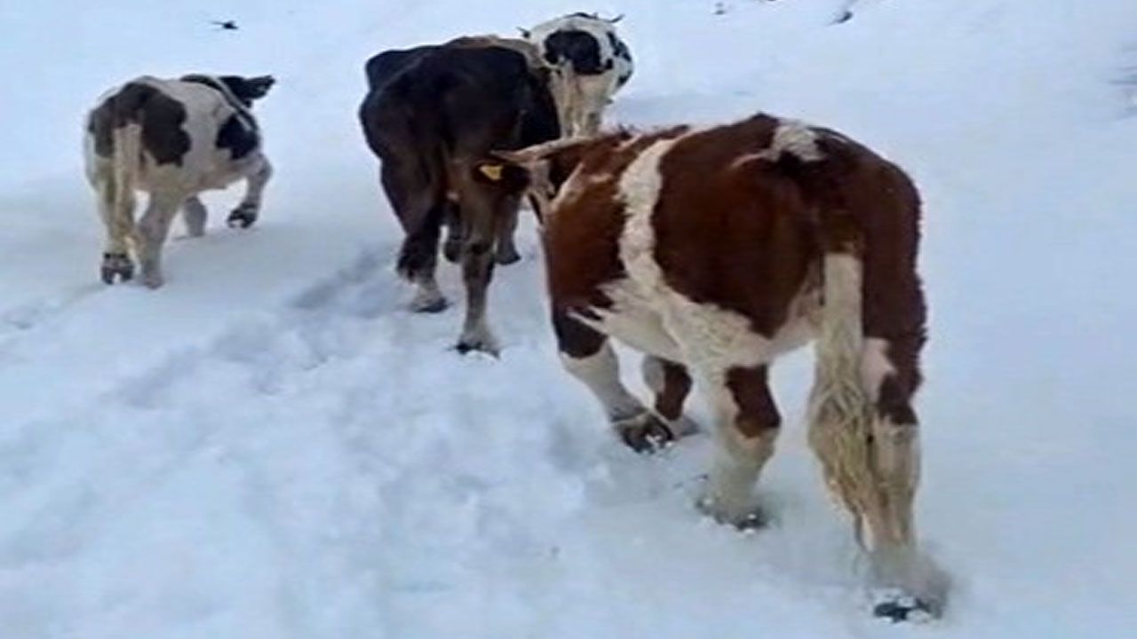 İlçeye bağlı Yoğurtlu ve Akbaş köylerinin yaylalarında büyükbaş hayvanlarını otlatan besiciler, kar altında kalan hayvanlarını güçlükle köylere yönlendirdi. Karlı kaplanan bölgede büyükbaş hayvanlarını zorlu bir yolculuğun ardından köylerine ulaştıran besiciler, mera sezonunu da kapatmış oldu.