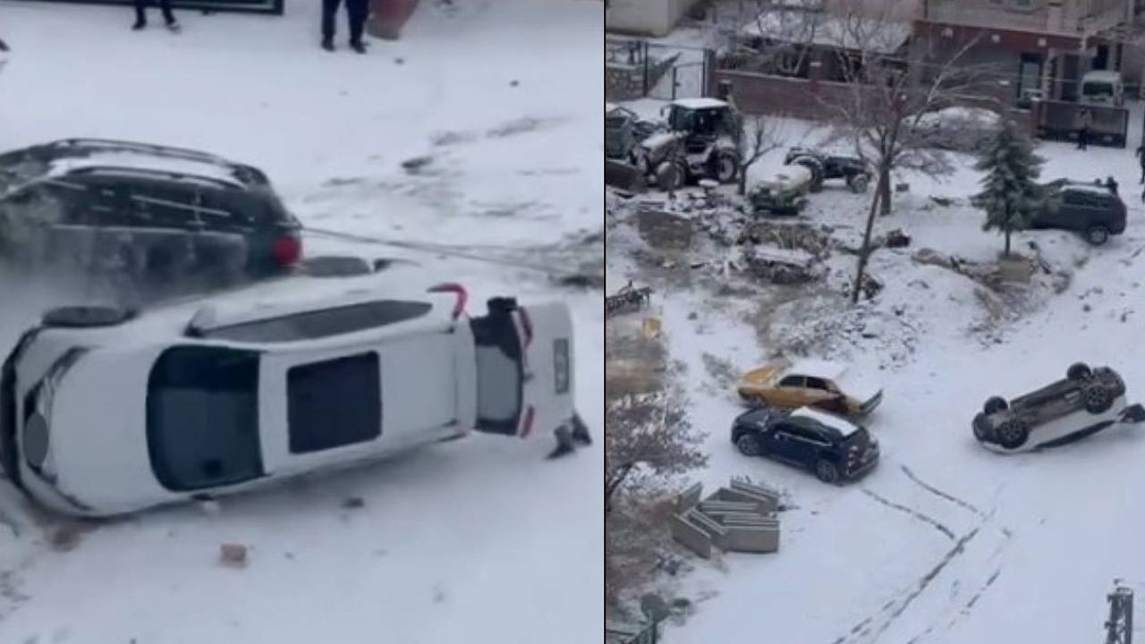Alınan bilgiye göre, Yeşilyurt ilçesi Göknar Sokak'ta sabah saat 8.30 sıralarında meydana gelen kazada, kar yağışı sonrası yolda oluşan buzlanma nedeniyle kontrolden çıkan cip, kayarak çarptığı park halindeki otomobilin devrilmesine yol açtı. Meydana gelen kaza, çevredeki vatandaşlar tarafından cep telefonu kamerasıyla kayıt altına alınırken, yollardaki buzlanma dolayısıyla bölgede çok sayıda kaza meydana geldiği belirtildi.