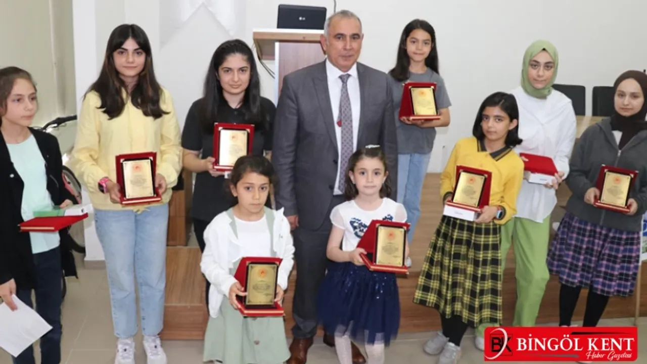 Ödülleri Bingöl İl Milli Eğitim müdürü Kadri Engin ve Çevre, Şehircilik ve İklim Değişikliği İl Müdürü İsa Gülgür takdim etti.