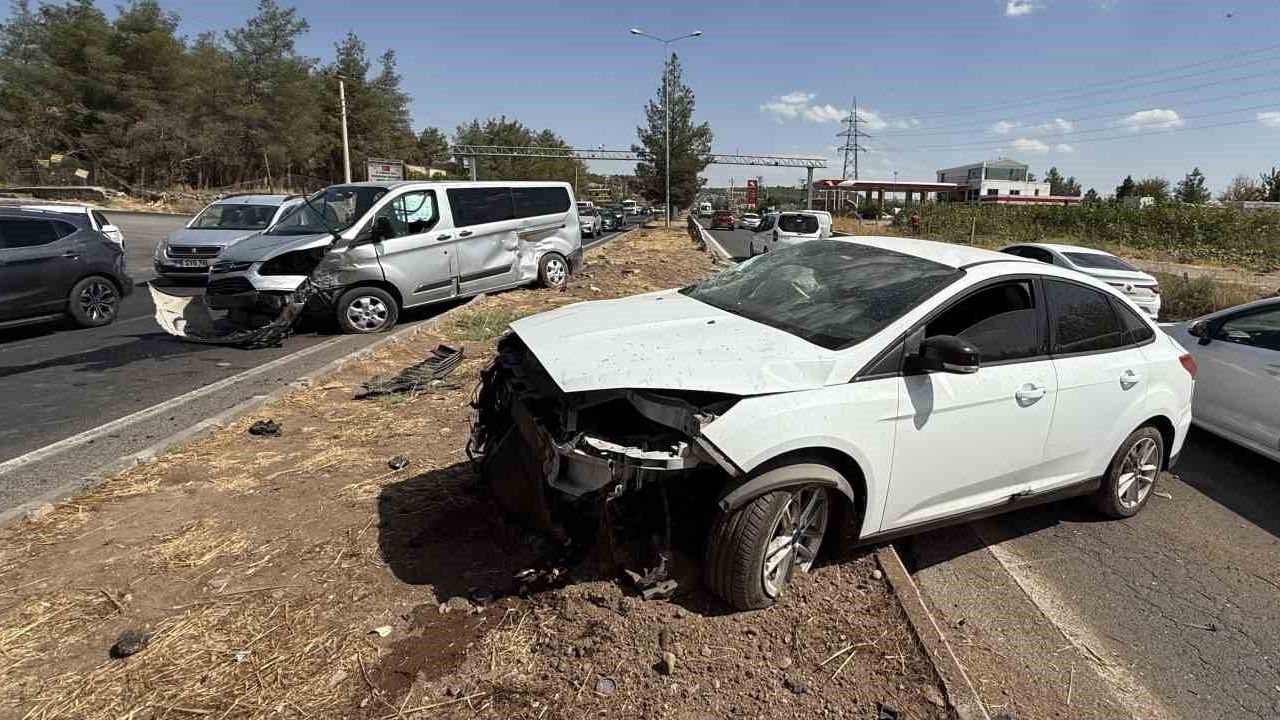 Diyarbakır-Silvan karayolunda meydana gelen trafik kazasında, yola kontrolsüz giren minibüsün çarptığı otomobil refüjden karşı şeride geçti.