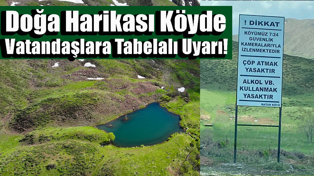Köyün girişine asılan uyarı tabelasında, köyün güvenlik kamerasıyla izlendiği belirtilerek, bölgede alkol tüketme ve yere çöp atmanın yasak olduğu vurgulandı.