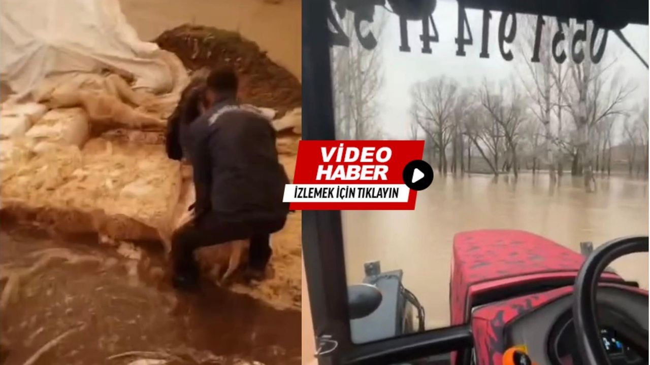 Kısa sürede etkili olan yağış, köyde maddi zarara yol açtı. Köylüler, imkânlarıyla saman balyalarını dışarı çıkarmaya çalıştı.